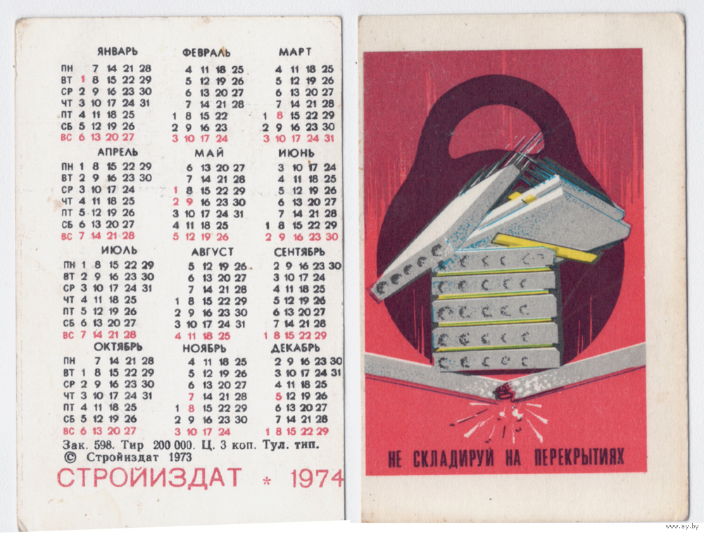 Календарь Не складируй на перекрытиях 1974