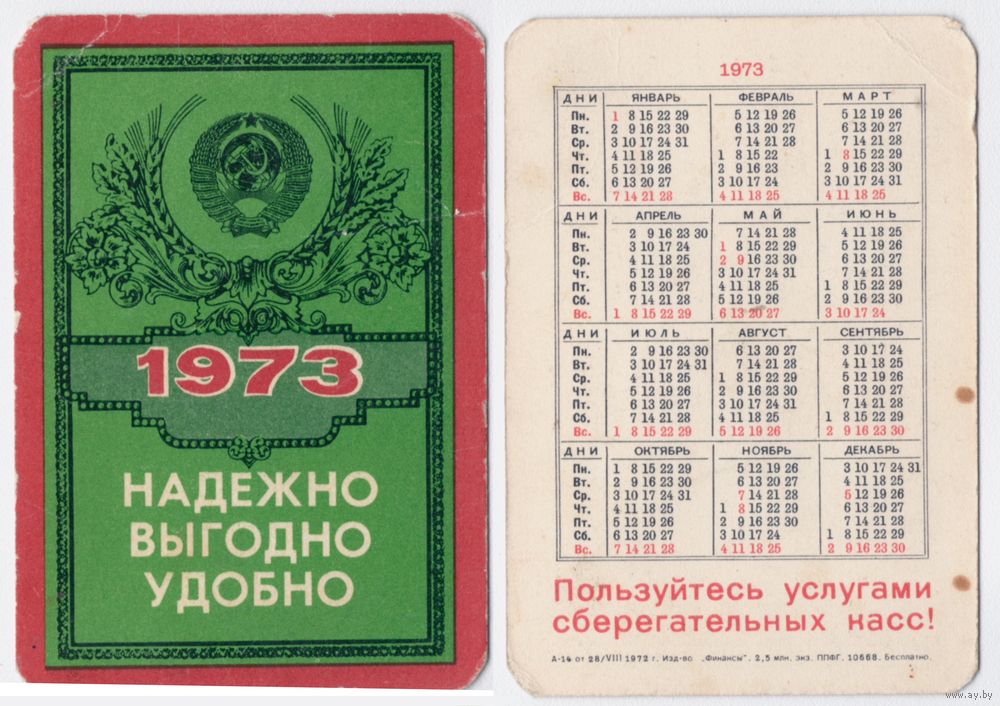 Календарь Пользуйтесь услугами Сберкасс 1973