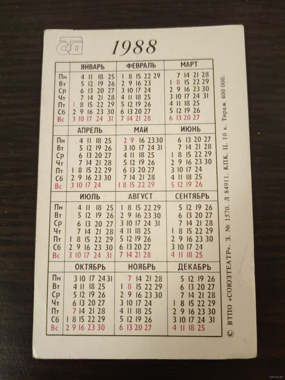 Календарь,реклама,союзники,1988