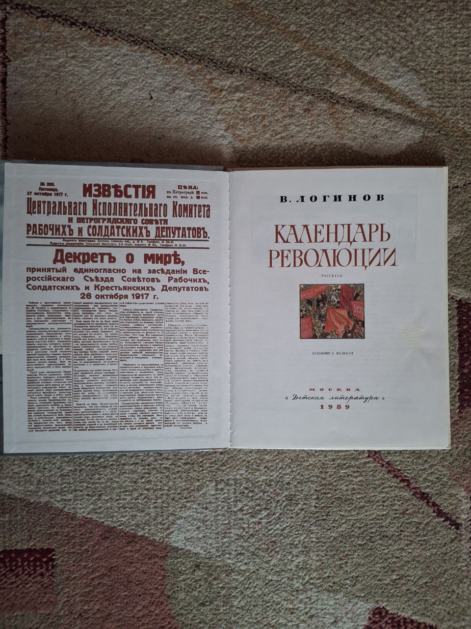 Цикл художественно-документальных рассказов о революционных событиях 1917 года, написанный для детей среднего и старшего школьного возраста. Рассказы написаны с точки зрения коммунистической идеологии и особое место в них отведено роли В. И. Ленина. Логинов В. Календарь революции. Рассказы. Худ. Е.Мешков. М. Детская литература 1989г. 60с., ил. Твердый издательский переплет, Альбомный формат. Подарочное издание. Цикл художественно-документальных рассказов о революционных событиях 1917 года и о той роли, которую сыграл в них В.И.Ленин. Вес =320 гр
