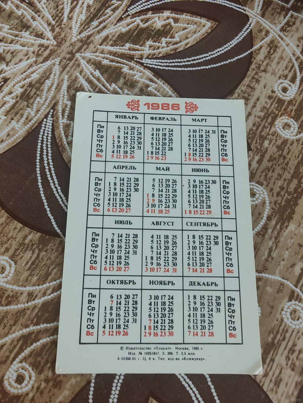Календарь,серия города ссср,1986