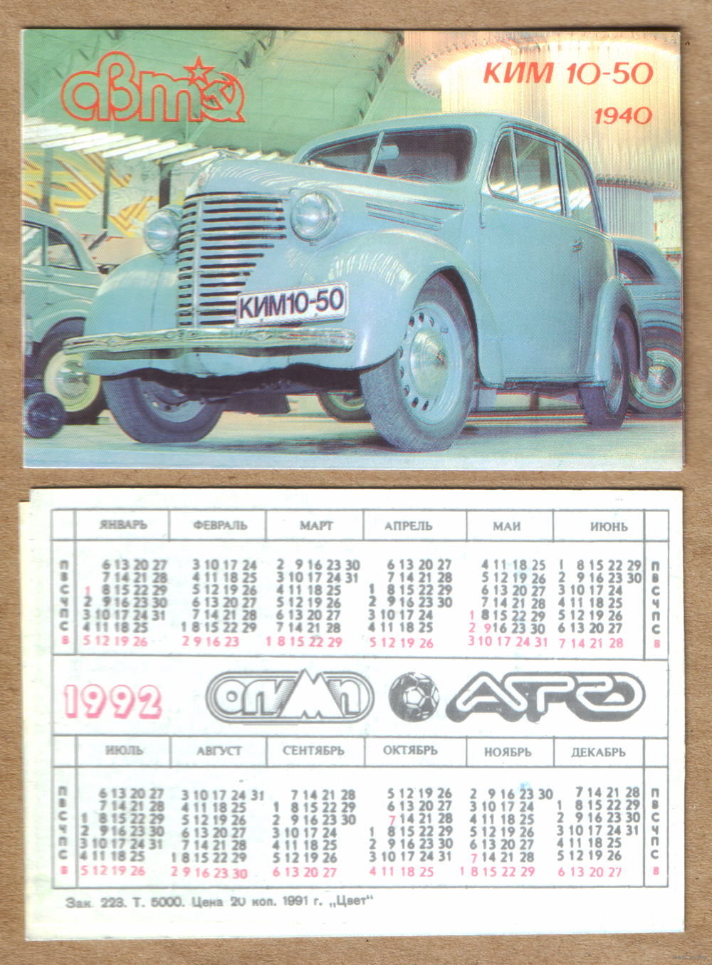Календарь Советский автопром КИМ-10-50 1992
