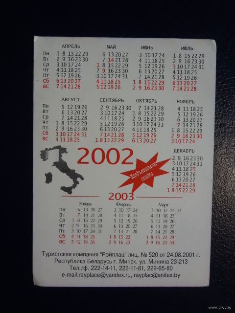 Календарик 04.2002-03.2003 г. Рэйплац Италия.