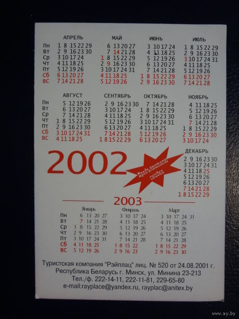 Календарик 04.2002-03.2003 г. Рэйплац. Здесь могли быть Вы.