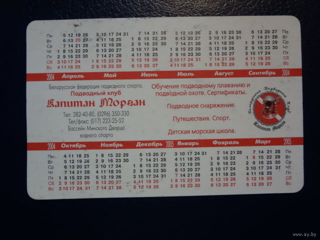 Календарик 04.2004-03.2005 г. Дайв-клуб Капитан Морган.