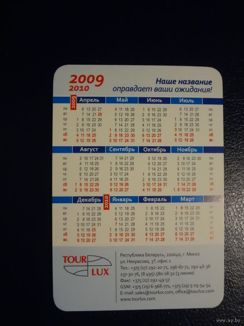 Календарик 04.2009-03.2010 г. TOUR LUX.