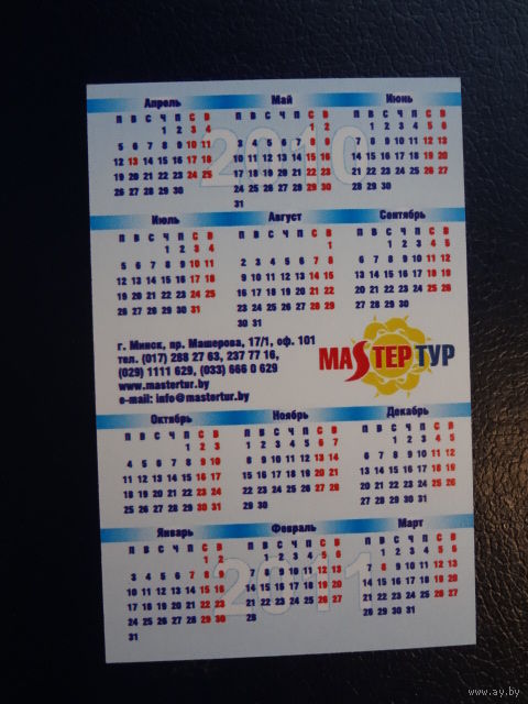 Календарик 04.2010-03-2011 г. Мастер тур.