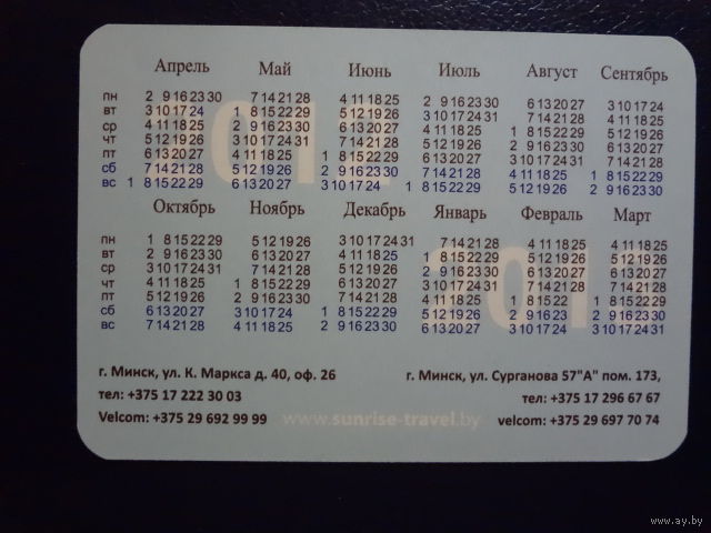 Календарик 04.2012-03.2013 г. Sunrise Travel. Освежись.