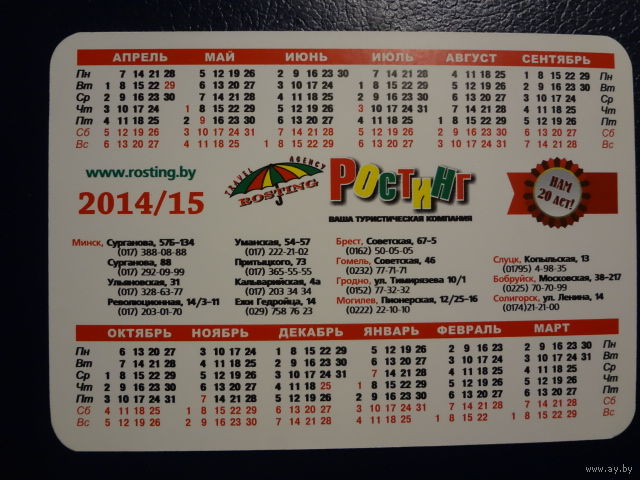 Календарик 04.2014-03.2015 г. Ростинг. Нам 20 лет.