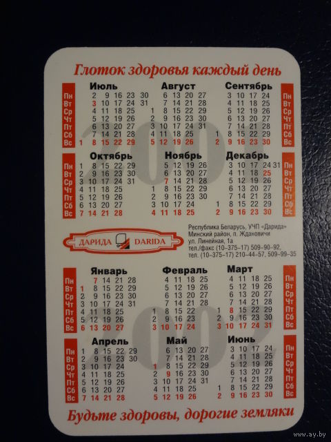 Календарик 07.2001-06.2002 г. Йодная Дарида.