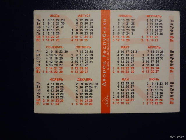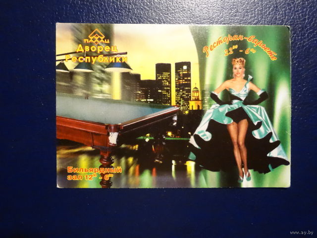 Календарик 07.2002-06.2003 г. Дворец Республики. Ресторан-варьете. Бильярдный зал.