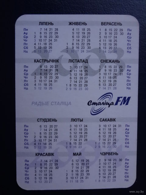 Календарик 07.2003-06.2004 г. Радыё Сталіца. Таццяна Якушава.