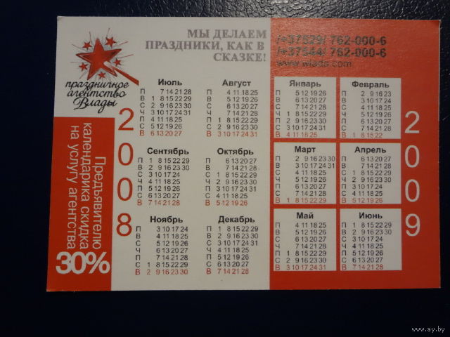 Календарик 07.2008-06.2009 г. Мы делаем праздники, как в сказке!
