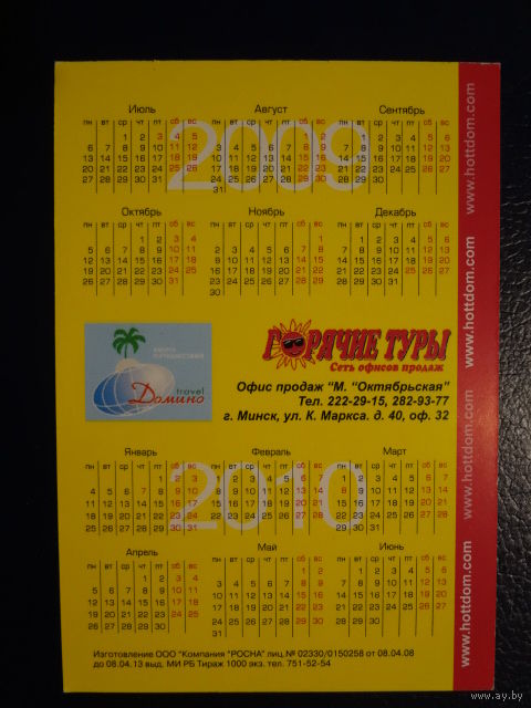 Календарик 07.2009-06.2010 г. Горячие туры.