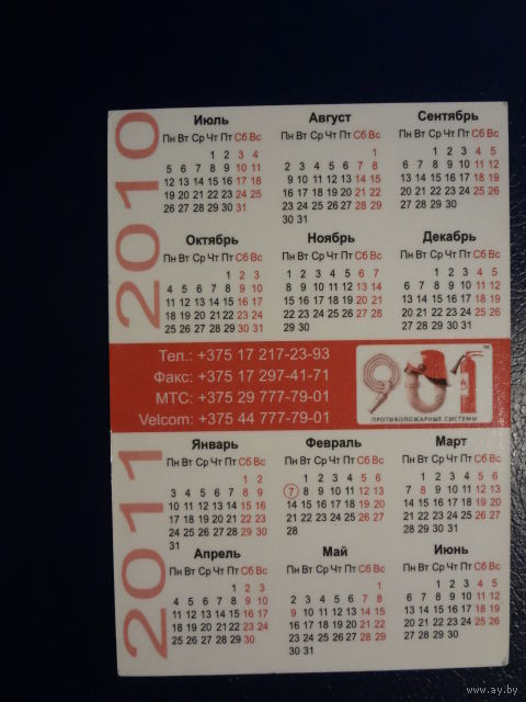 Календарик 07.2010-06.2011 г. Поставка противопожарного оборудования.