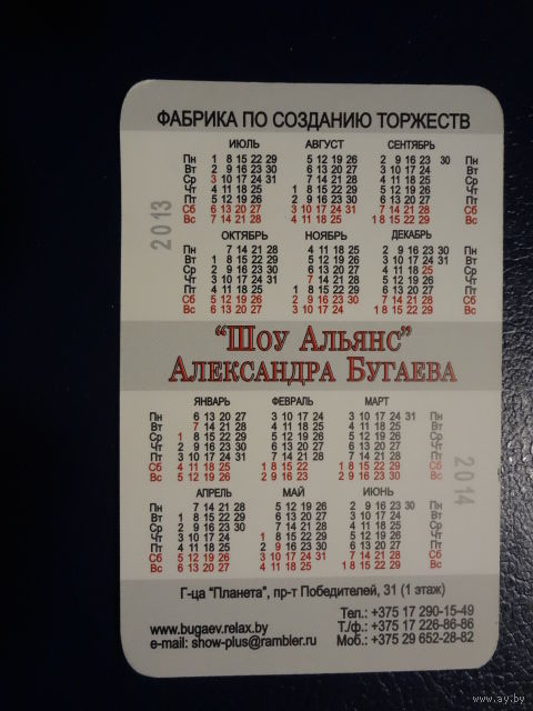Календарик 07.2013-06.2014 г. Александр Бугаев. Организация и проведение праздников.