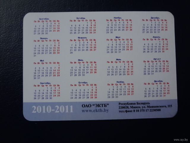 Календарик 09.2010-2011 г. ОАО ЭКТБ
