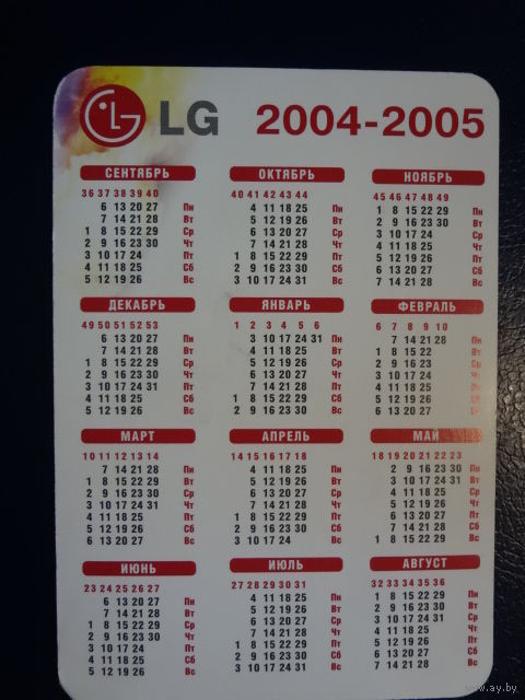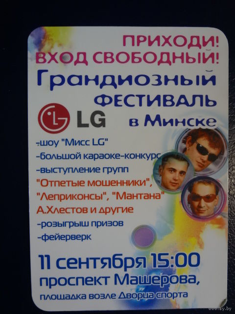 Календарик 09.204-08.2005 г. Грандиозный фестиваль LG в Минске.