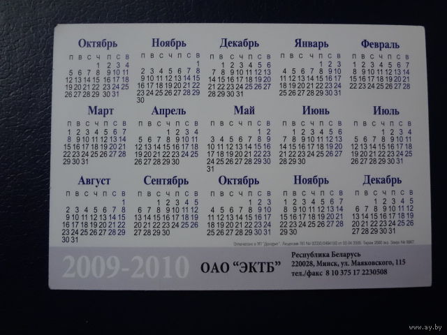 Календарик 10.2009-2010 г. ОАО ЭКТБ.