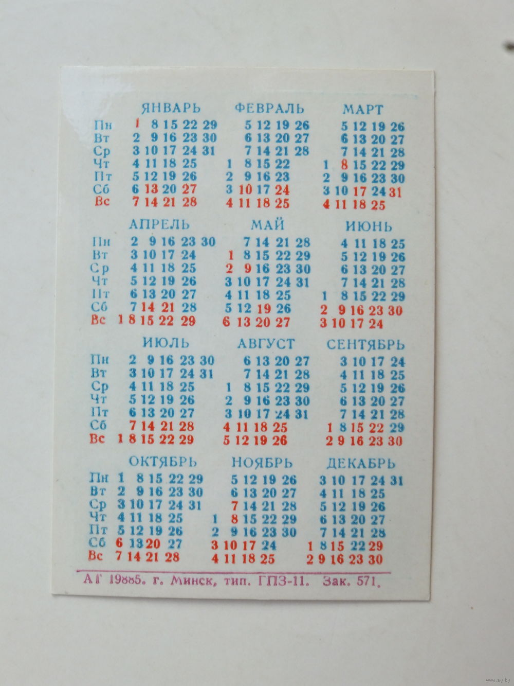 Календарик 11 ГПЗ Минский подшипниковый завод 1979