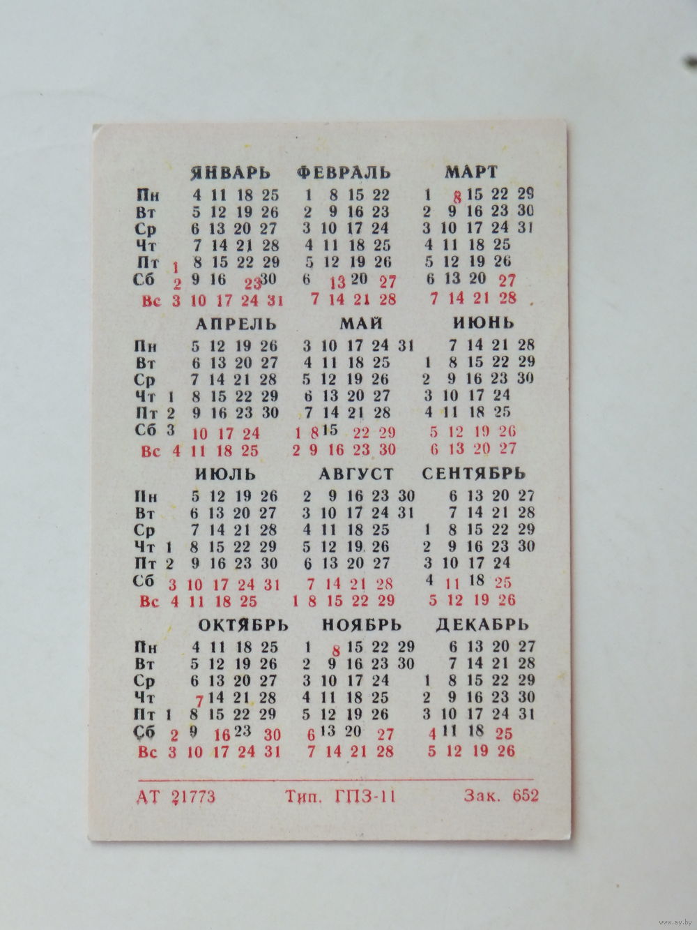 Календарик 11 ГПЗ Минский подшипниковый завод 1982