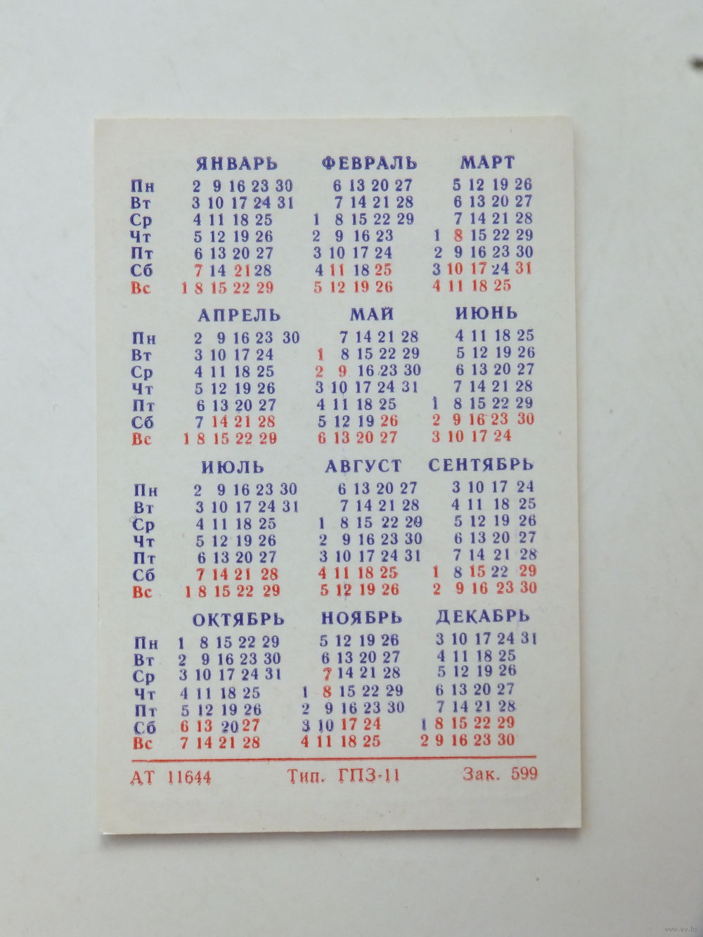 Календарик 11 ГПЗ Минский подшипниковый завод 1984