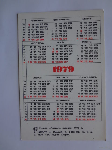 Календарик 1979 г. Герб СССР.