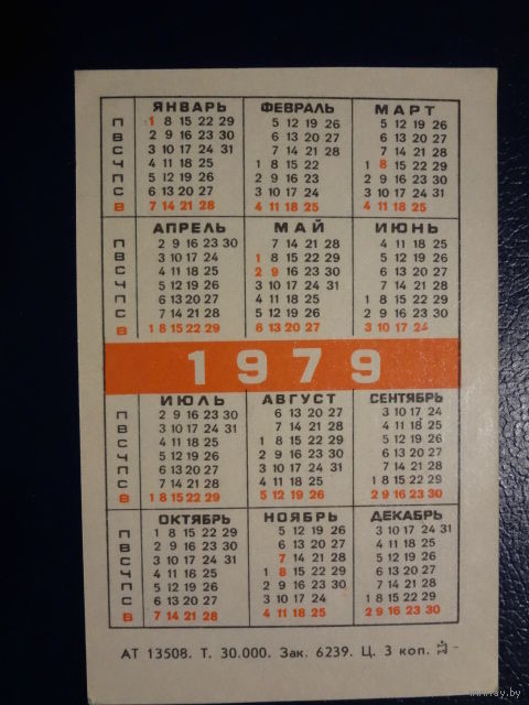 Календарик 1979 г. Курган Славы.