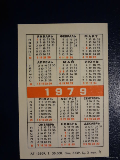 Календарик 1979 г. Минск. Микрорайон Восток-1.