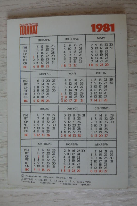 Календарик, 1981, Александр Тихонов, из серии "Герои XII Зимней Олимпиады 1980 г." (биатлон).