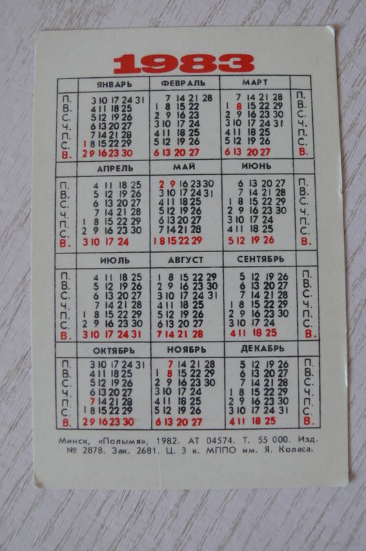 Календарик, 1981, ОСВОД; изд. Минск.