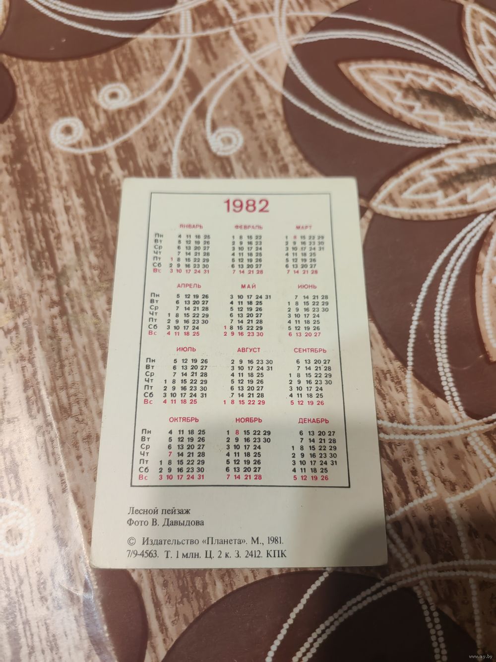 Календарик,1982