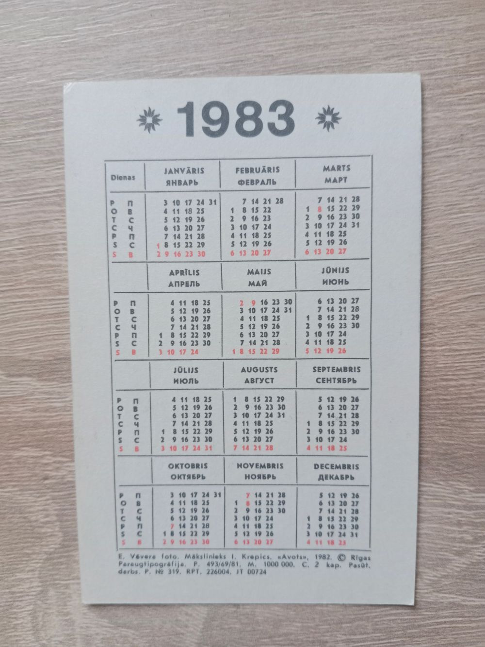 Календарик 1983