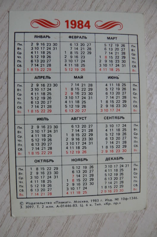 Календарик, 1984, Москва. Кремль. Собор Василия Блаженного.