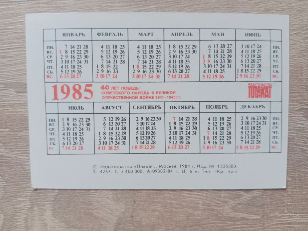 Календарик 1985