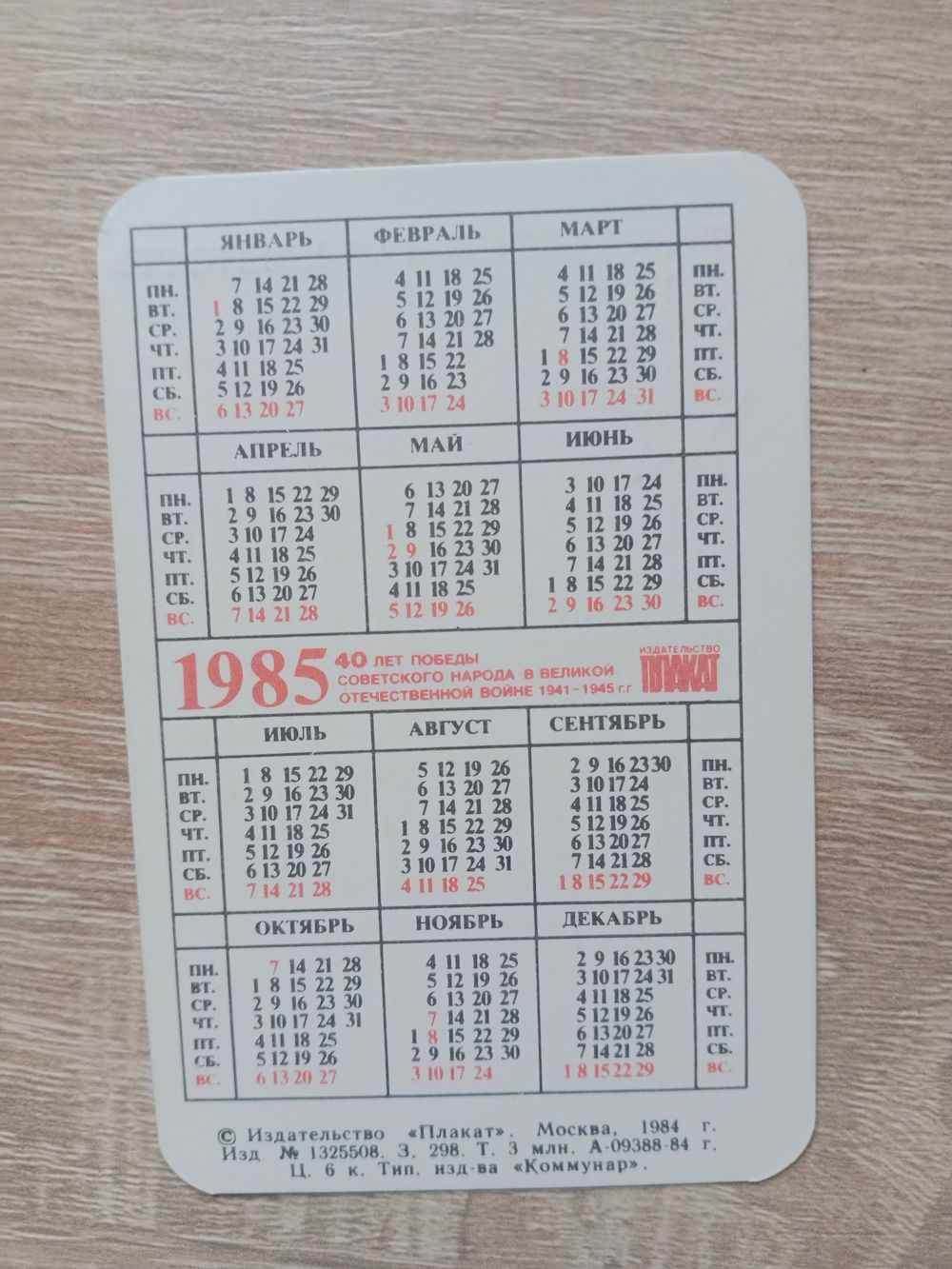Календарик 1985