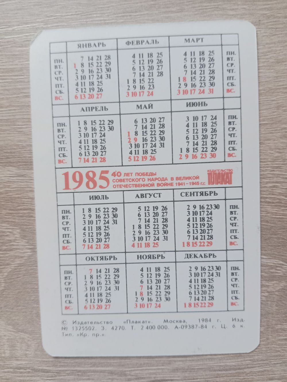Календарик 1985