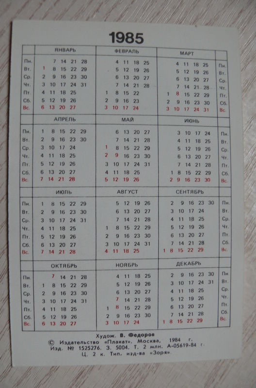 Календарик, 1985. Бережно относитесь к родной природе!