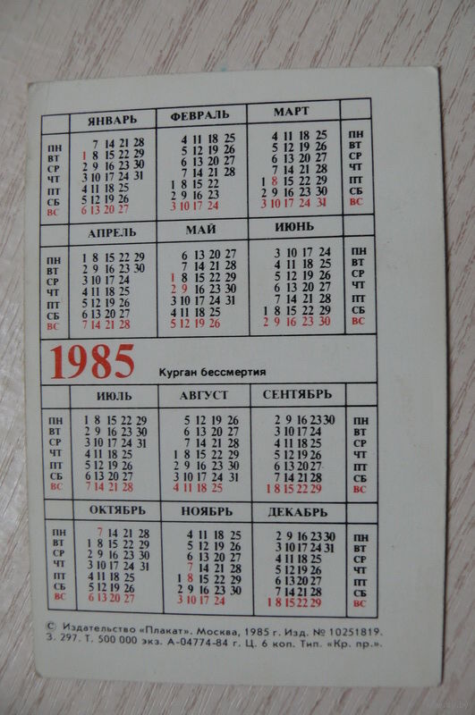 Календарик, 1985, Брянск. Курган бессмертия, из серии "40 лет Победы".