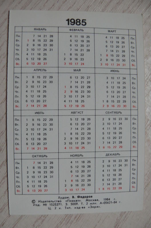 Календарик, 1985. Много леса не руби, мало леса - береги, нет леса - посади.