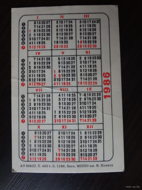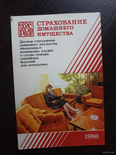 Календарик 1986 г. Госстрах. Страхование домашнего имущества.