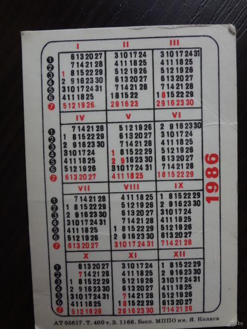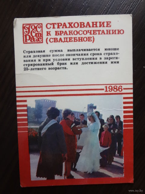 Календарик 1986 г. Госстрах. Страхование к бракосочетанию (свадебное).
