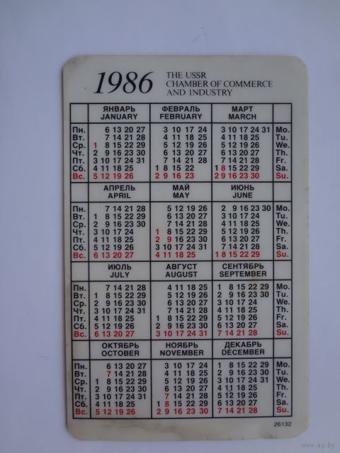Календарик 1986 г Торгово-промышленная палата СССР.