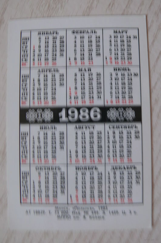 Календарик, 1986, Предупреждайте пожары на фермах, изд. Минск.