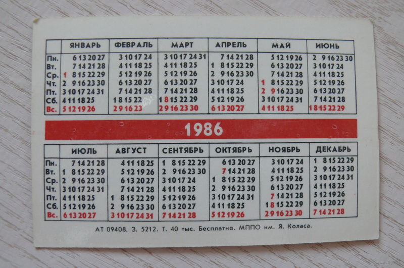 Календарик, 1986, Телевизоры ПО "Горизонт", изд. Минск (Красный костел).