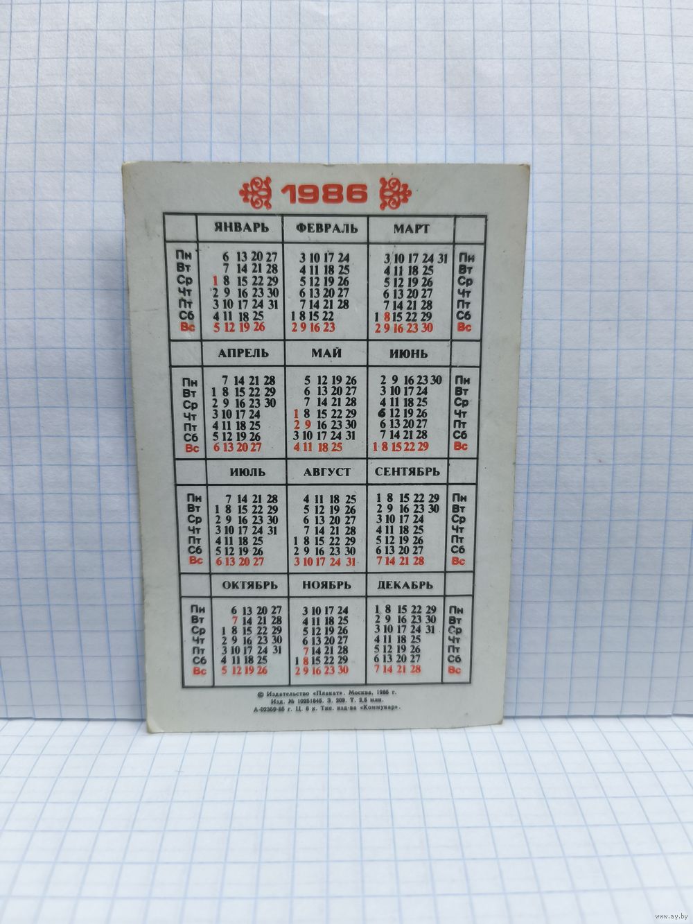 Календарик, 1986г. Рига. 14