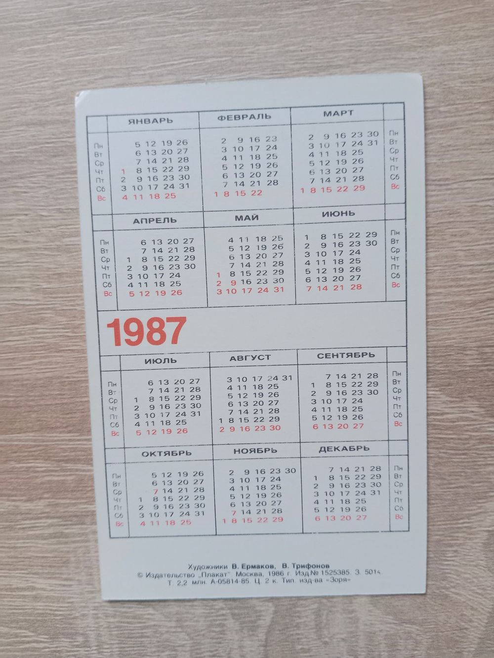 Календарик 1987