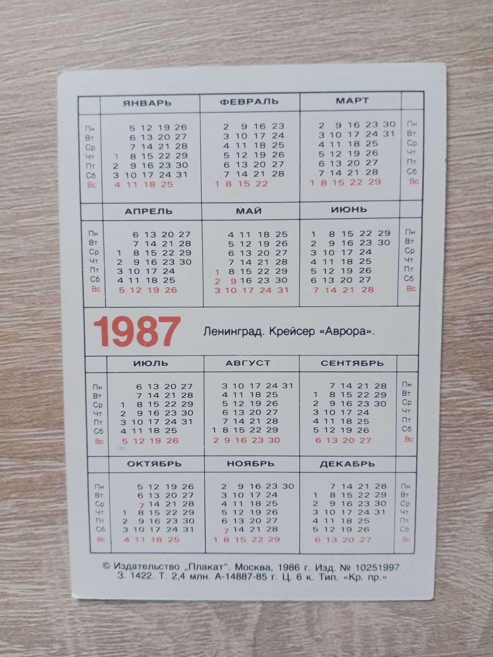 Календарик 1987
