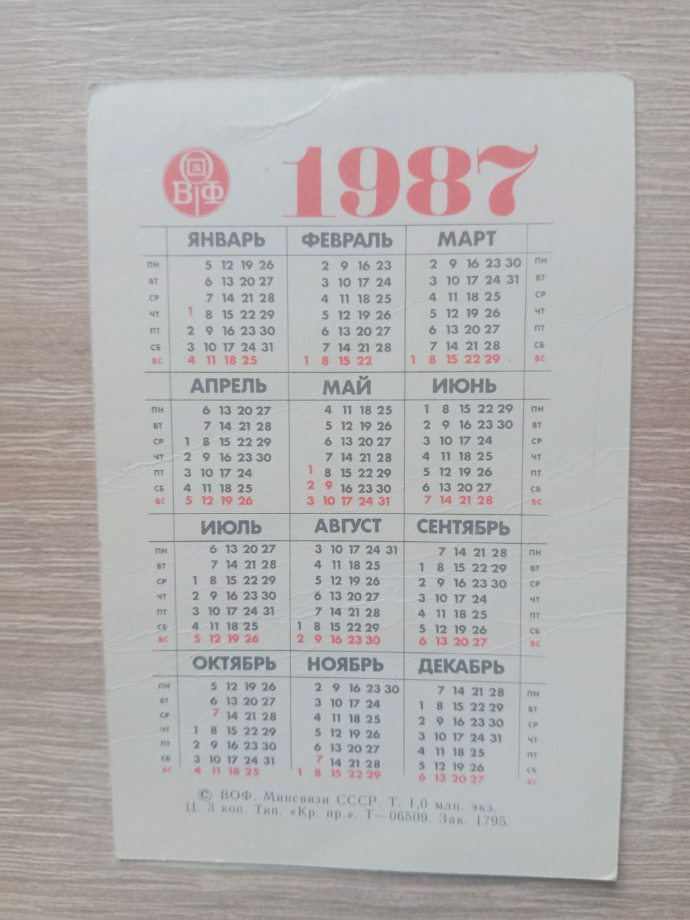 Календарик 1987