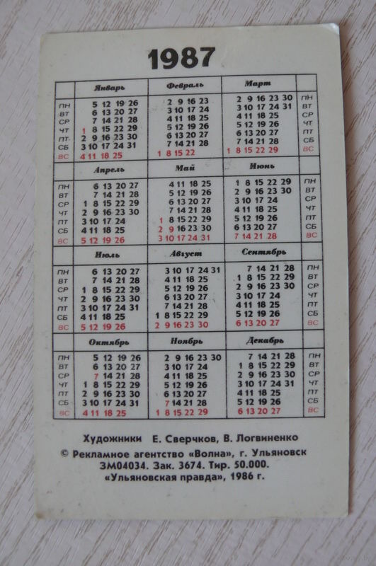 Календарик, 1987, Фотоаппараты "ФЭД". 60 лет, изд. Ульяновск.